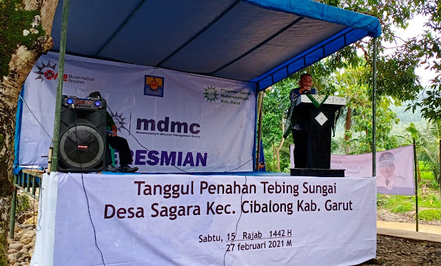 SURYAWARTA.COM-Nasional- Muhammadiyah Disaster Management Center (MDMC) Kabupaten Garut meresmikan tanggul bronjong penahan tebing sungai Cibaluk di Desa Sagara, Kecamatan Cibalong, Sabtu (27/02/2021). Tanggul ini dibangun sebagai tahapan program rehabilitasi dan rekonstruksi oleh MDMC Kabupaten Garut dalam respon bencana banjir longsor yang terjadi pada tanggal 12 Oktober 2020 silam.